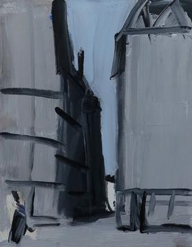 Frieder Heinze, „Komposition mit Mann und Eistüte“, 1979, Öl auf Leinwand, 100 x 65 cm